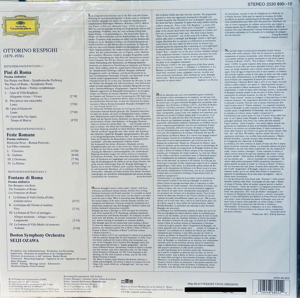 SEIJI OZAWA - 小澤征爾 BOSTON SYMPHONY ORCHESTRA PINI DI ROMA/PINES OF ROME ( 2 X VINYL)  LP MADE IN EU