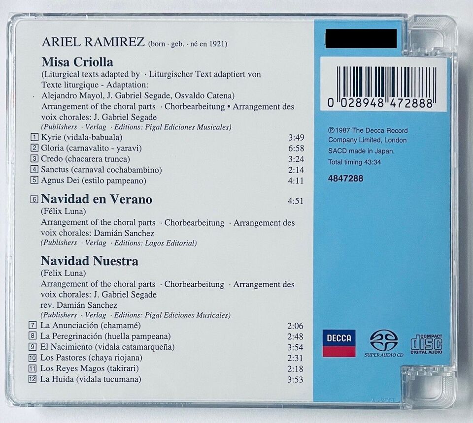 JOSE CARRERAS - MISA CRIOLLA (SACD) MADE IN JAPAN