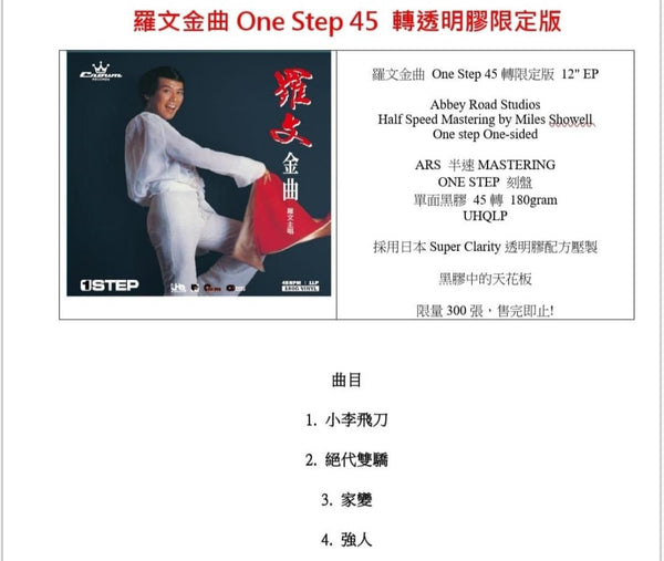 ROMAN TAM - 羅文 金曲 (UHQLP) LIMITED EDITION ONE SIDE 45RPM CLEARED VINYL